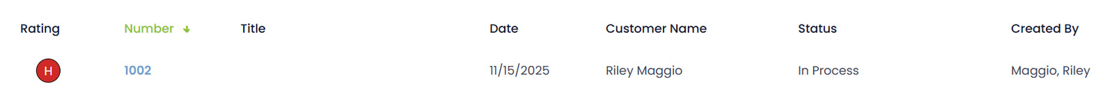 Quotes with higher numbers appear at the top by default. You can sort the table by clicking on the column headers.