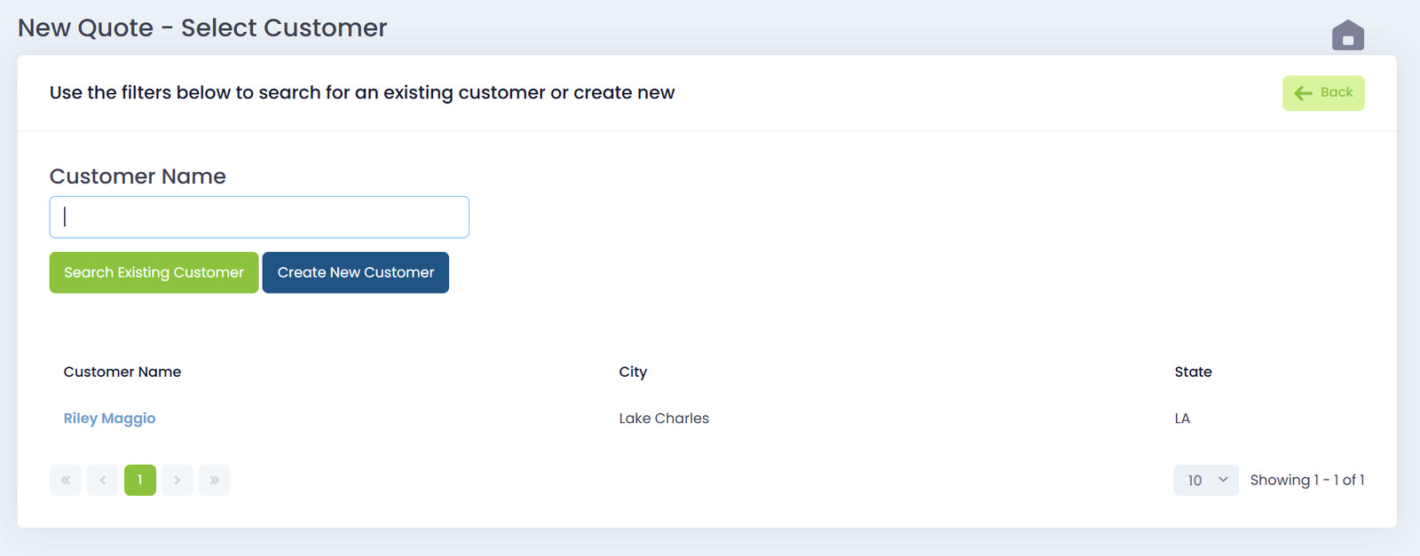 To search, type the customer’s name in the Customer Name field and click Search Existing Customer.