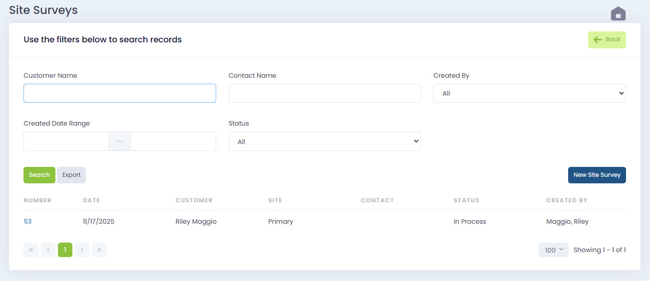 When you open Site Surveys, you’ll see the search page. You can filter surveys by: