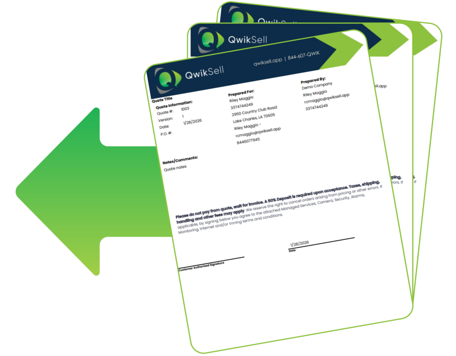 QwikSell brings structure and consistency to quoting by centralizing pricing, services, and quote layout in one system. Instead of relying on spreadsheets, disconnected tools, or tribal knowledge, teams work from a single service catalog with built-in pricing logic, margins, and required components. Quote templates standardize how proposals are presented, ensuring every quote follows the same structure, language, and branding while reducing the time spent formatting and correcting documents.